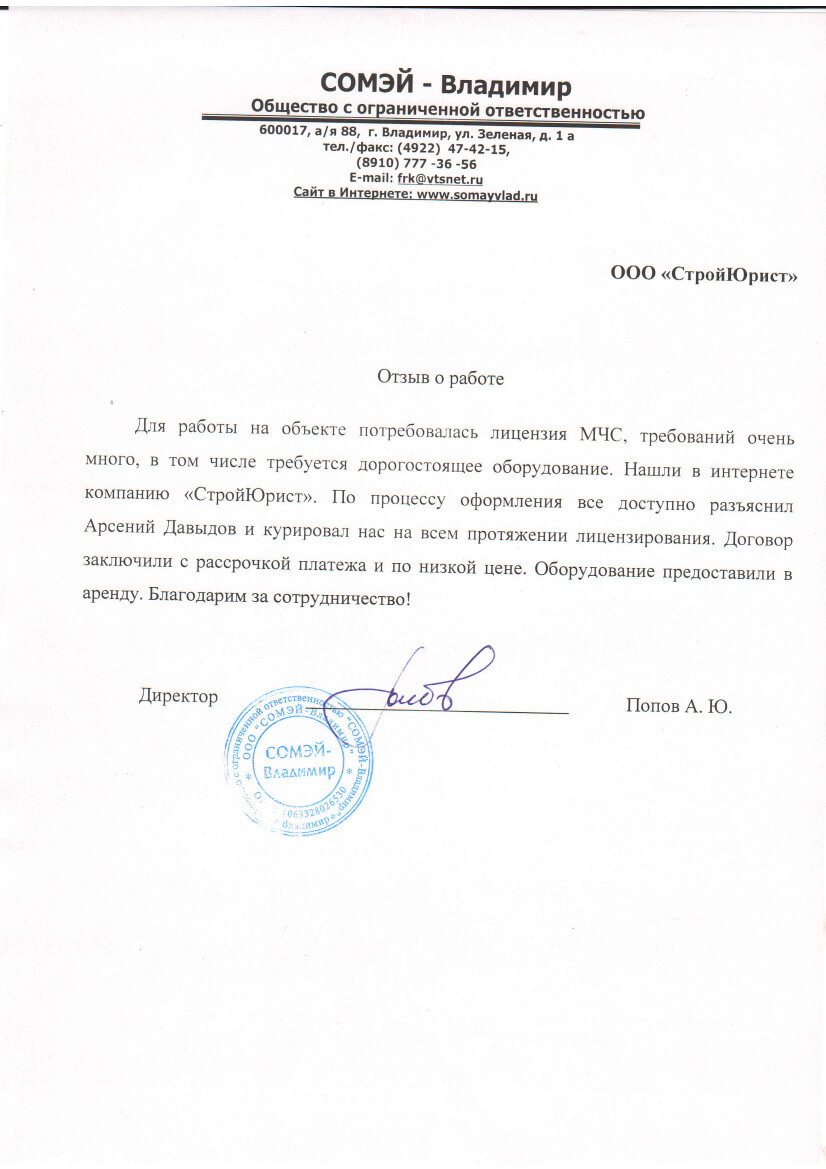 Отзывы клиентов "СтройЮрист" по лицензированию МЧС в Кирове