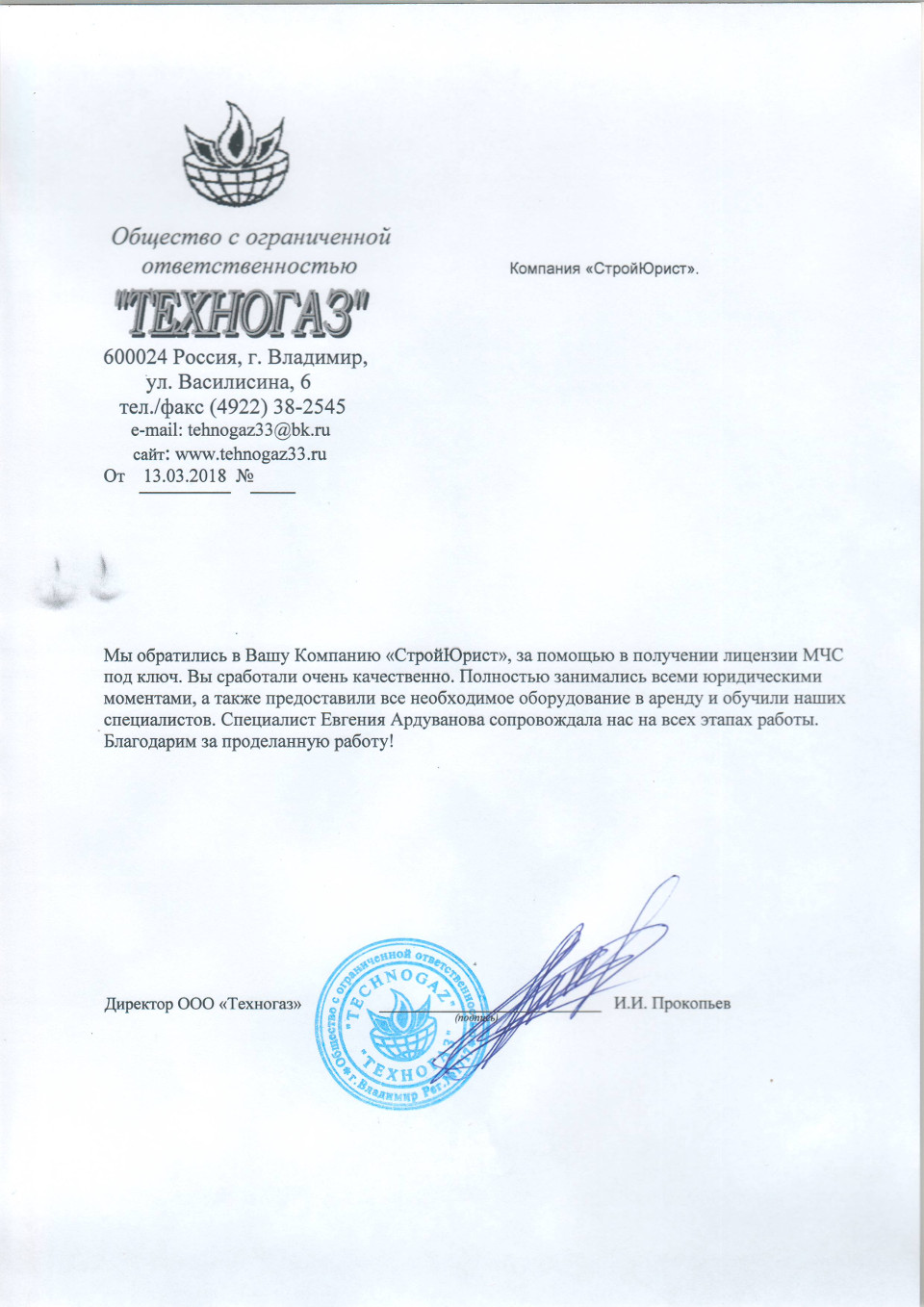 Отзывы клиентов "СтройЮрист" по лицензированию МЧС в Кирове